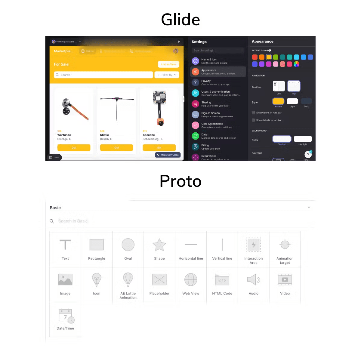 Glide: This is a drag and drop feature-rich No Code platform, which allows you to build a shopfront. If you’re selling a product and you want to test the market, this program is perfect. You don’t need to invest a huge amount of time or money into your site, and you can see how things go. There are plenty of features in the store front and user profile creation. The format is drag and drop, which allows easy set-up.