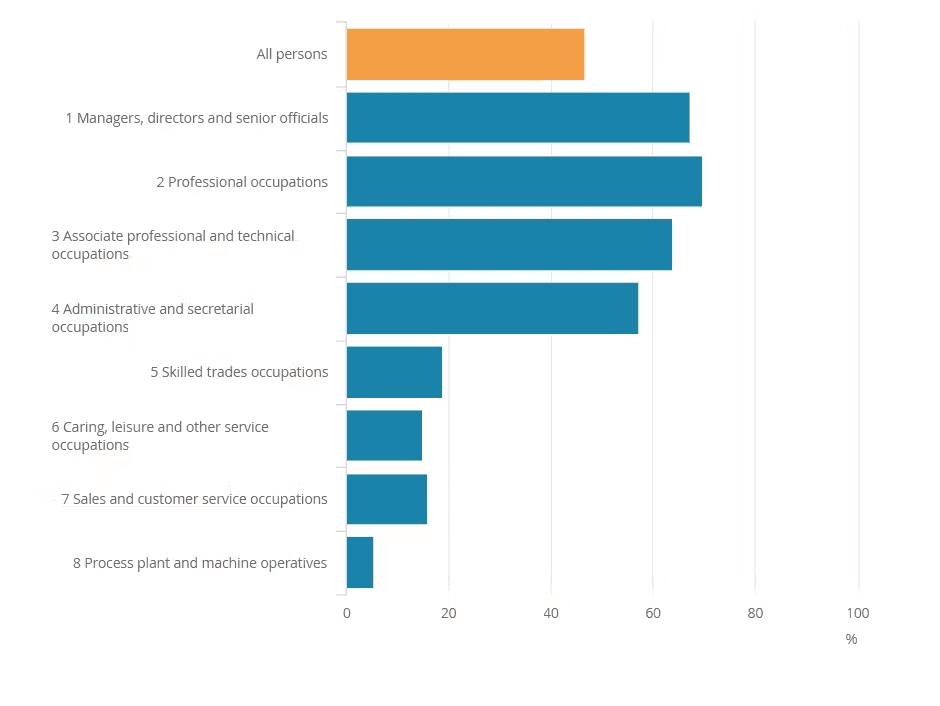 An ONS report shows a breakdown of occupations and what percentage of those people are working from home: